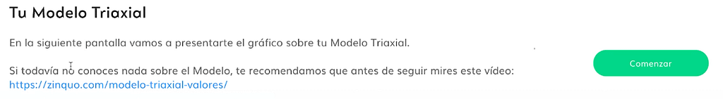 Una vez pulses en “Siguiente” aparecerá la gráfica que representa tu modelo de valores y junto a este un formulario con dos campos para que escribas: