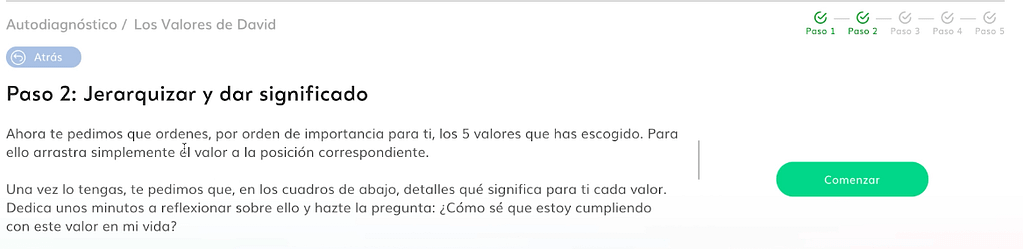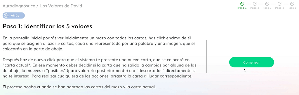 Si ya conoces la metodología y simplemente quieres revisar cómo está tu sistema de valores, comprobarás que el propio sistema te guiará en el proceso.