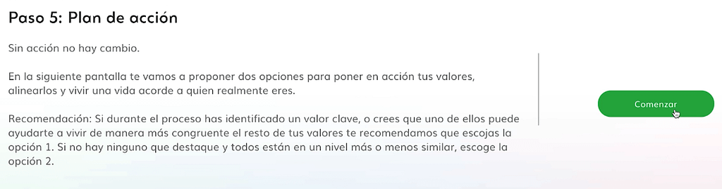 Cuando pulsas en el botón “Comenzar” comprobarás que existen dos modalidades para de plan de acción.