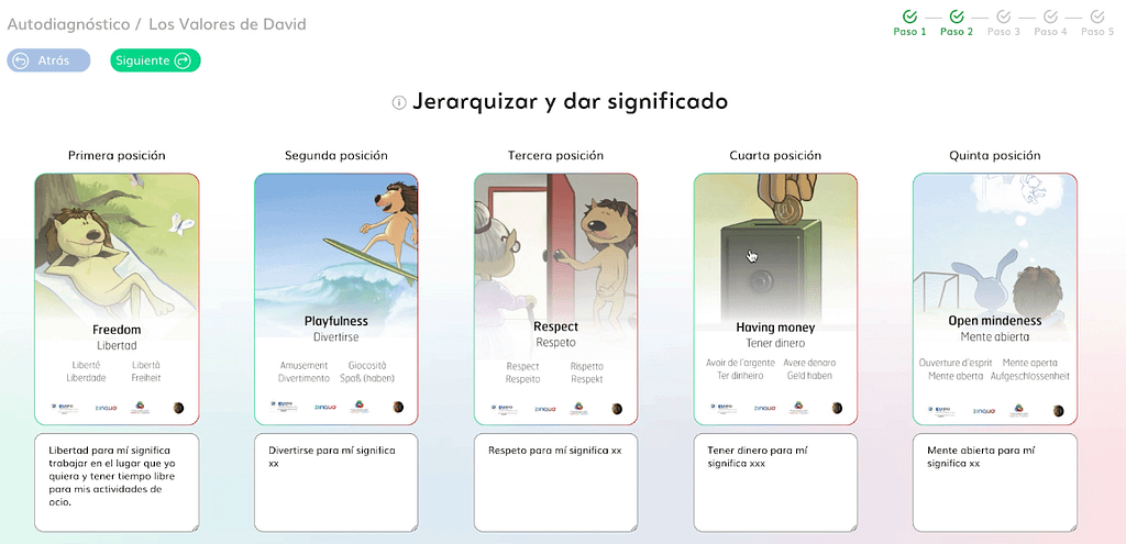 Un texto explicativo te indicará cómo proceder y en qué consiste el juego de valores.
